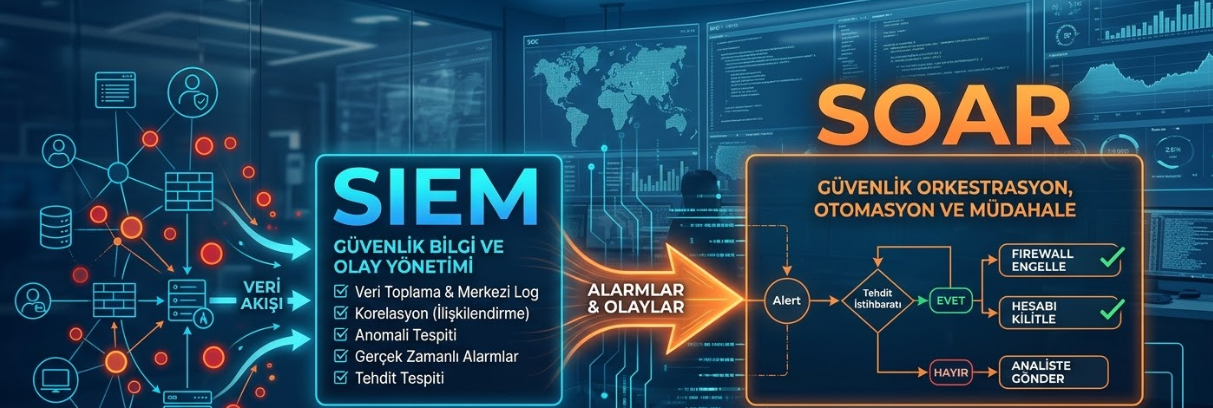 Özetle: Eğer evin içine kamera takıyorsan bu SIEM'dir; hırsız girdiğinde otomatik olarak kapıları kilitleyip polisi arayan sistem ise SOAR'dır.